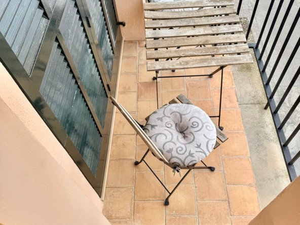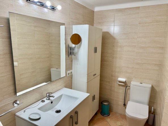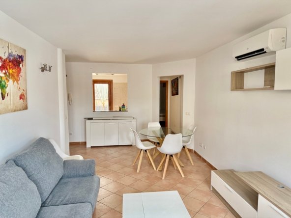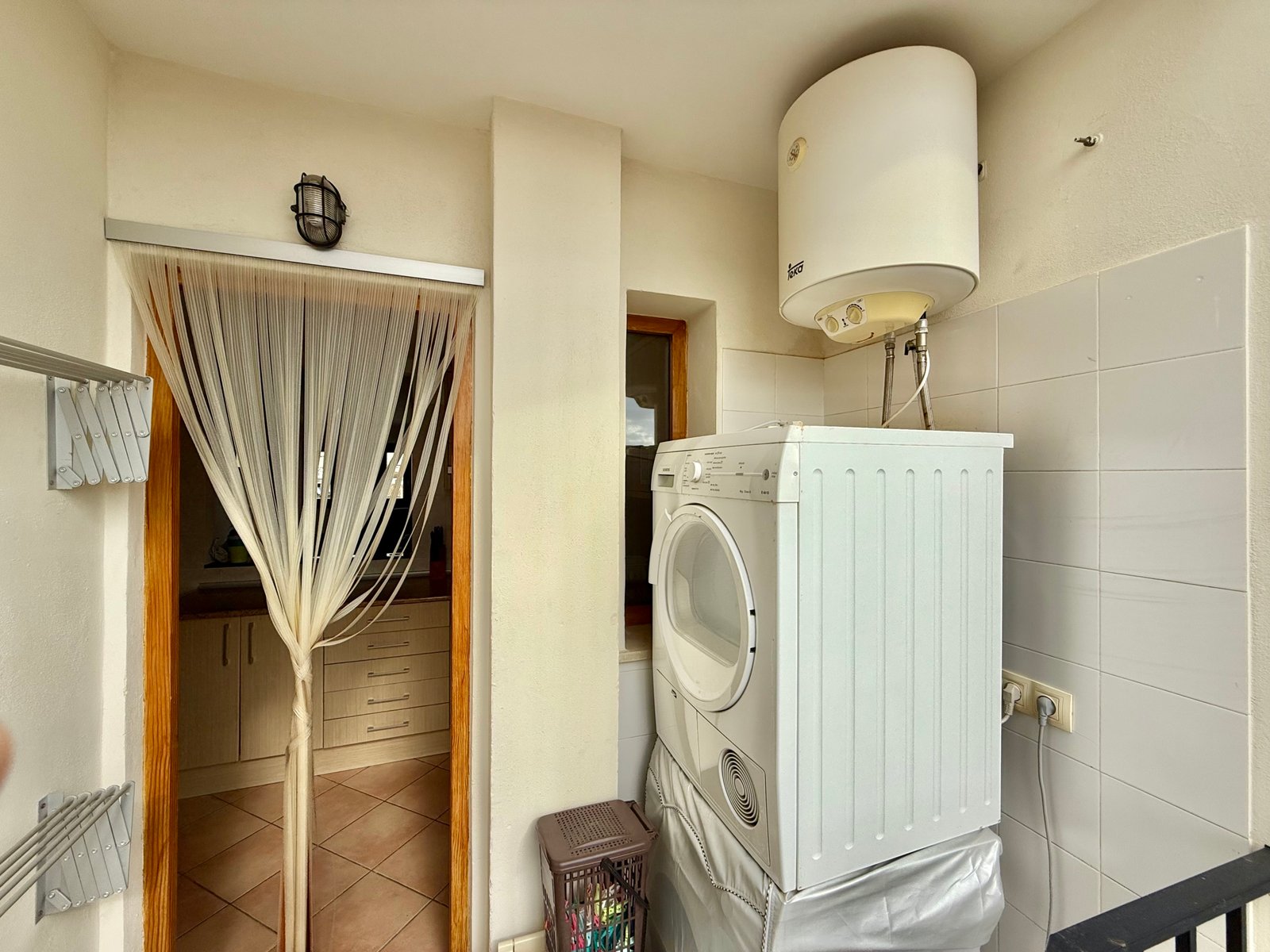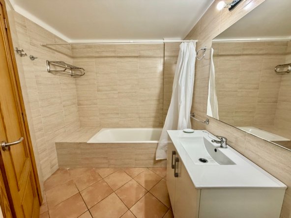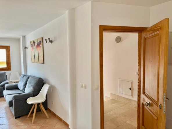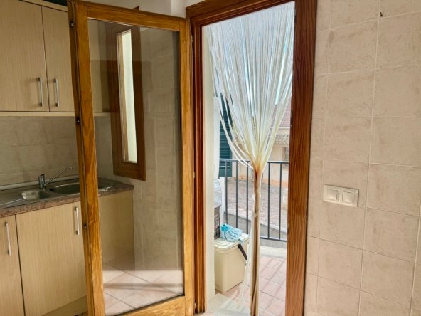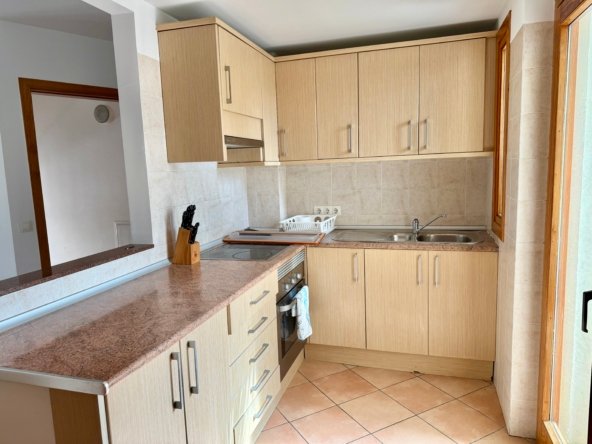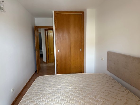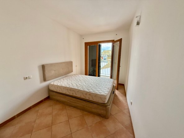 Consta de 2 habitaciones dobles con armarios empotrados, un baño completo, salón-comedor luminoso, cocina con electrodomésticos, balcón-coladuria con secadora y lavadora, un pequeño balcón privado y acceso a una terraza superior compartida.